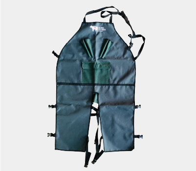 Diseñados para trabajo podológico, permiten mantener las herramientas al alcance ya que cuenta con bolsillos en la parte frontal para guardar los cuchillos despalmadores, protegen la ropa ya que son impermeables.